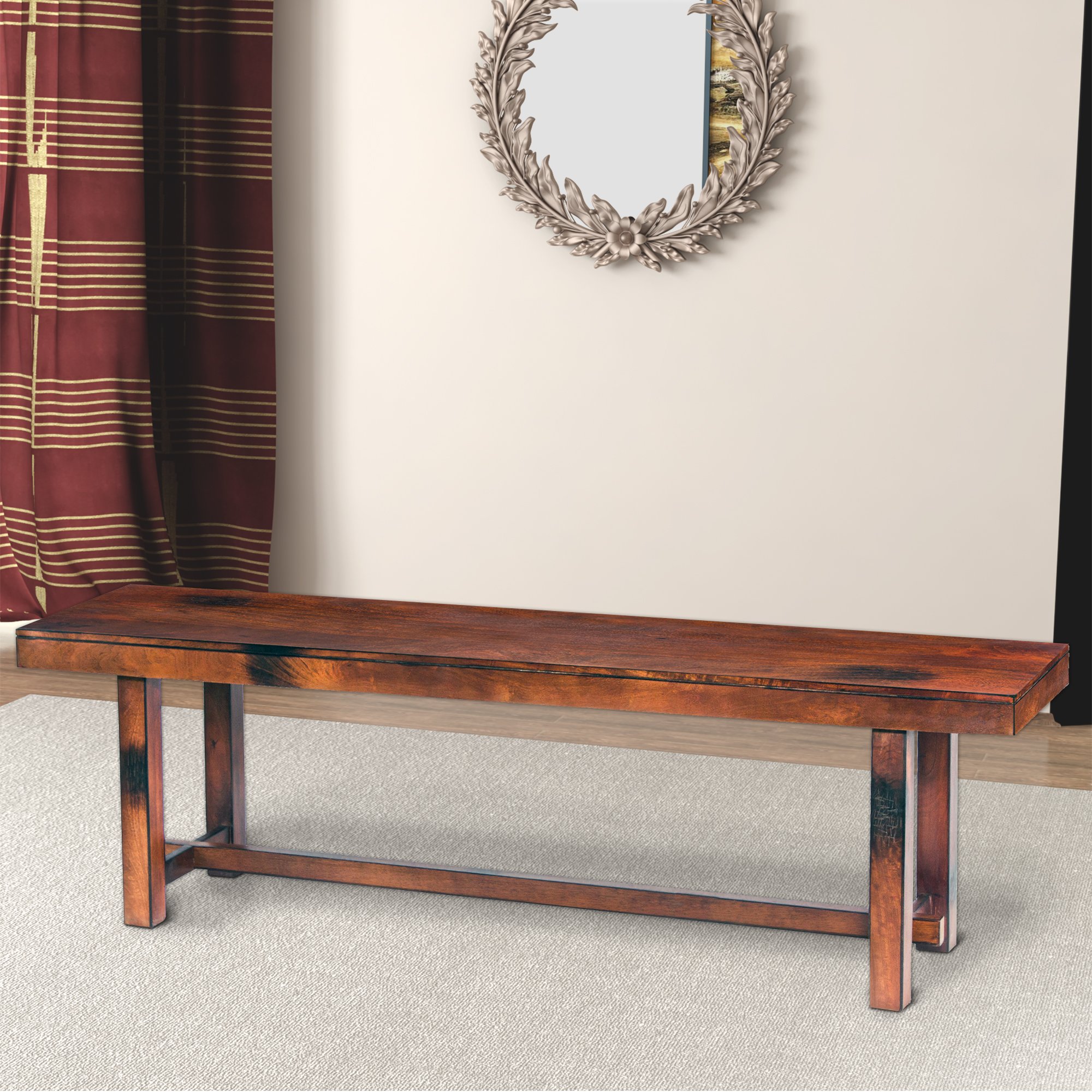 Bring home this transitional style bench to add an extra seating space for two to three people. This bench is constructed using deep brown mango wood which provides great durability which makes it a perfect piece of furniture for indoors and outdoors. It is supported by block legs while the stretcher reinforces its construction and works as a footrest. Set this bench in your entryway for putting up shoes or replace your dining chairs by adding this bench in your dining space. Also, it provides a perfect place in your garden and patio settings.